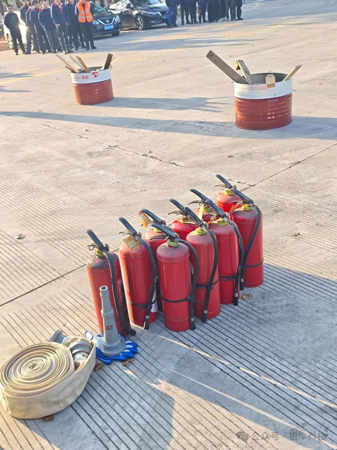 Ketua Komander Zhang menjalankan latihan keselamatan kebakaran dan latihan penggunaan peralatan di tapak, menerangkan secara terperinci kaedah pemeriksaan alat pemadam api, arahan untuk menggunakan alat pemadam api dan hos api, dan langkah berjaga-jaga keselamatan kebakaran.
